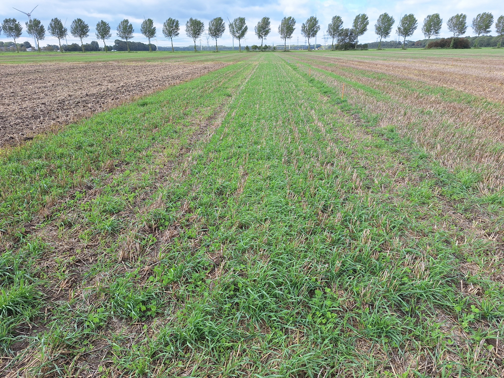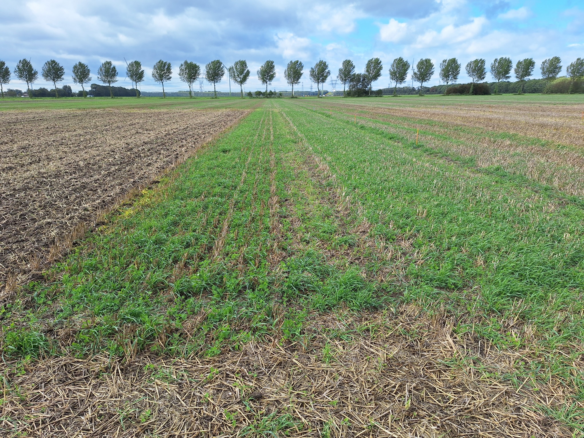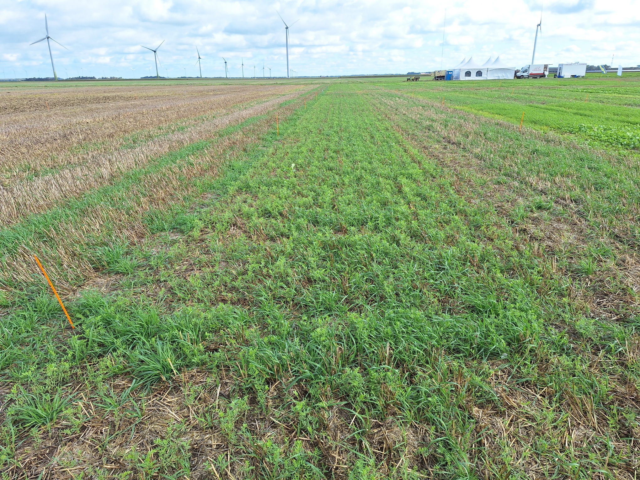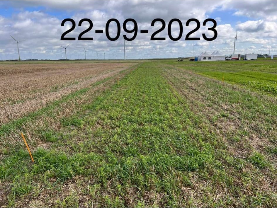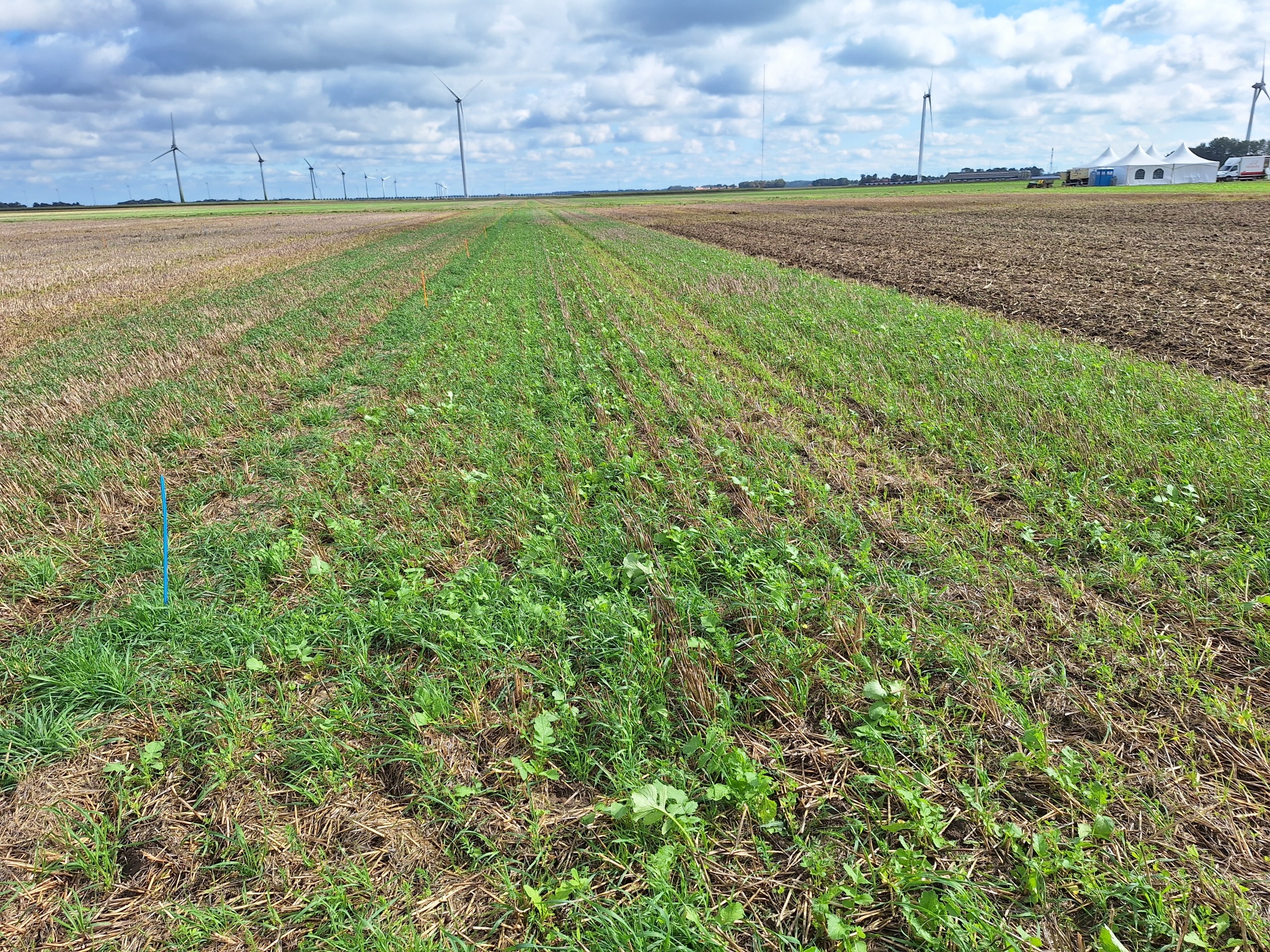 A number of the trial plots on the site had been drilled using a Moore Unidrill earlier in the season. The project manager heading up the trial was very pleased with the progress of these plots, and reported the crops were looking well-established and healthy with good soil biology.